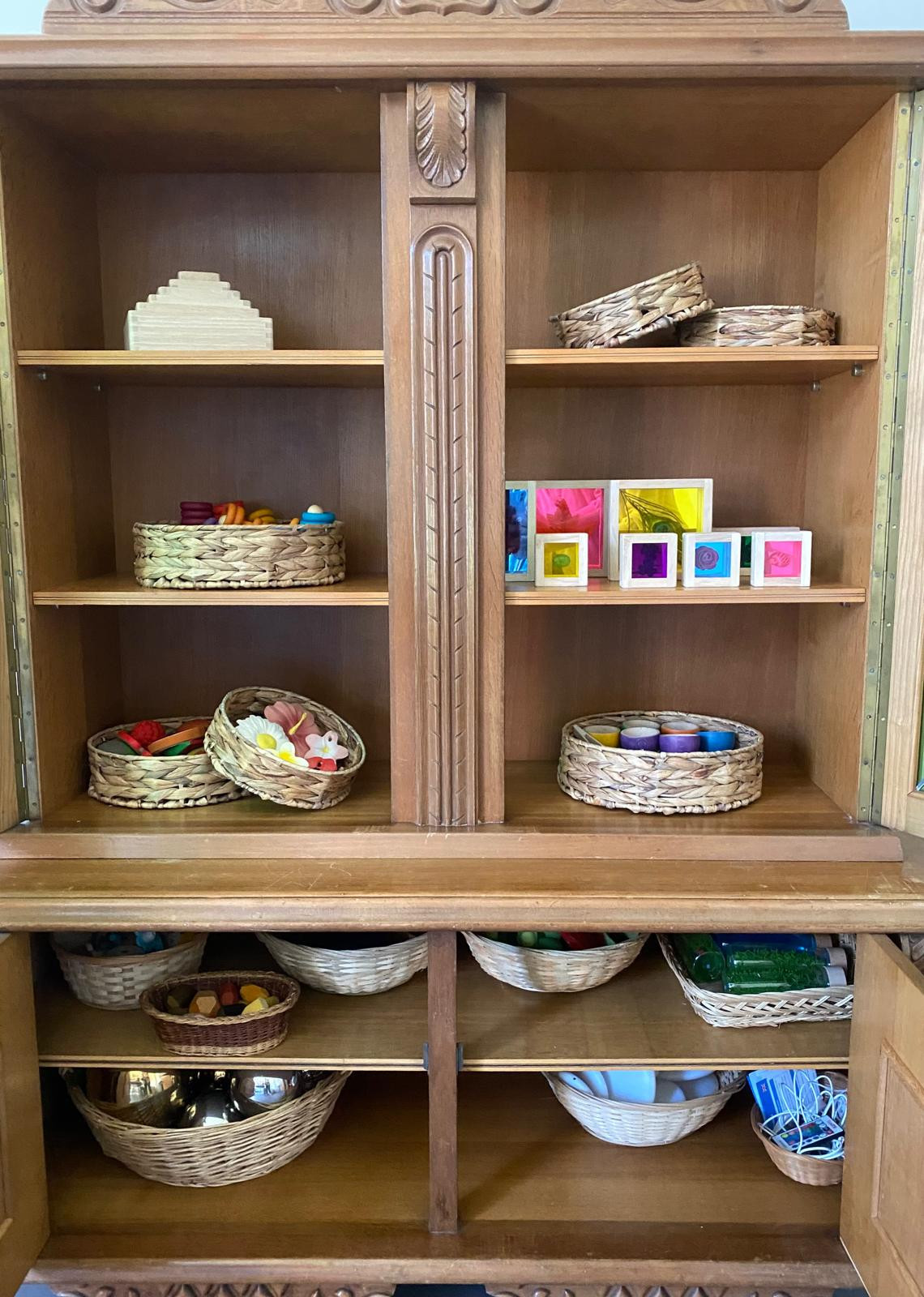 We brengen de natuur naar binnen door gebruik te maken van natuurlijk en kosteloos materiaal bij het spel (lege verpakkingen, kartonnen doosjes, …). Daarom opteren we eveneens voor houten speelgoed en levensecht speelgoed, wat dan weer een link legt met de dagelijkse realiteit.